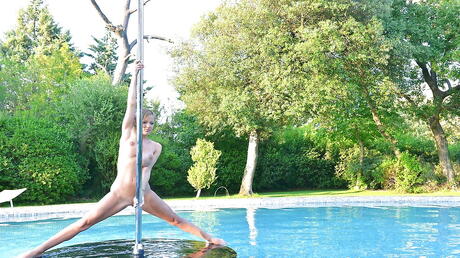 Hot Legs and Feet: Peachy Brytyjczyk Loulou Petite w seksownym bikini lubi fetysz stóp w pobliżu basenu