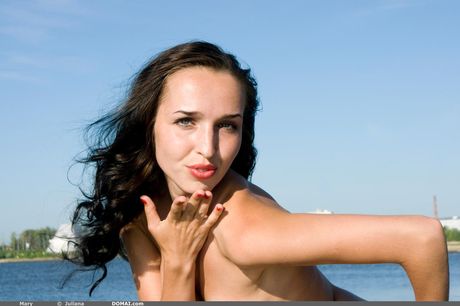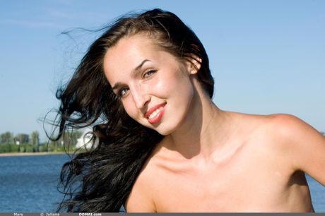 Domai: Czysta nastolatka z długimi włosami pozuje nago w wannie podczas solo