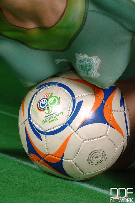 Porn World: Seksowna blondynka Jasmin stawia nago w swoich skarpetach piłkarskich i pokazuje swoją cipkę