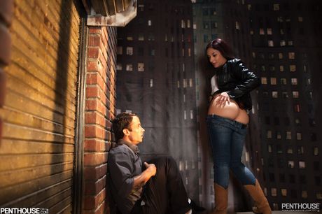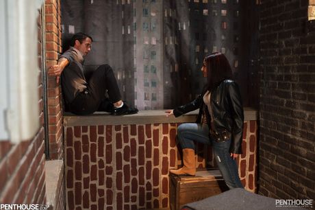 Penthouse Gold: Seksowna brunetka Sheena Ryder dostaje swoją przebitą cipkę pieprzyła na balkonie