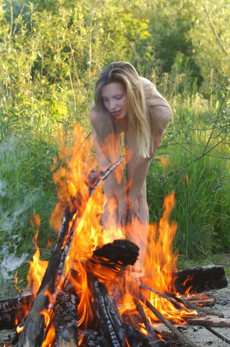 Met Art: Chuda blondynka Kira e ujawnia się na pustyni i pokazuje swoje duże cycki i cipkę