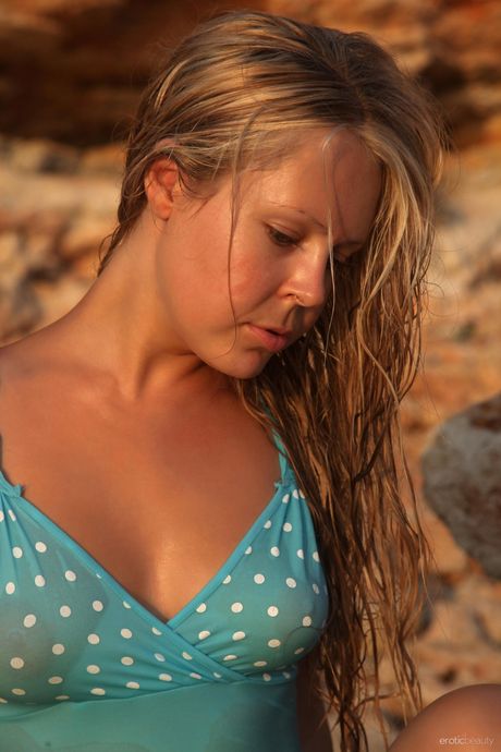 Erotic Beauty: Chuda blondynka nastolatka flora pozada nago w wodzie i na plaży