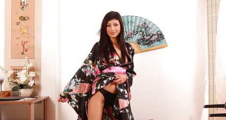 Wet And Puffy: Oszałamiająca orientalna laska Yvette w jednolitym stroju wkładając zabawkę w jej cipkę