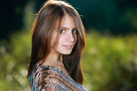Met Art: Cienka Teen Dakota Pink usuwa sukienkę i pozuje nago rano