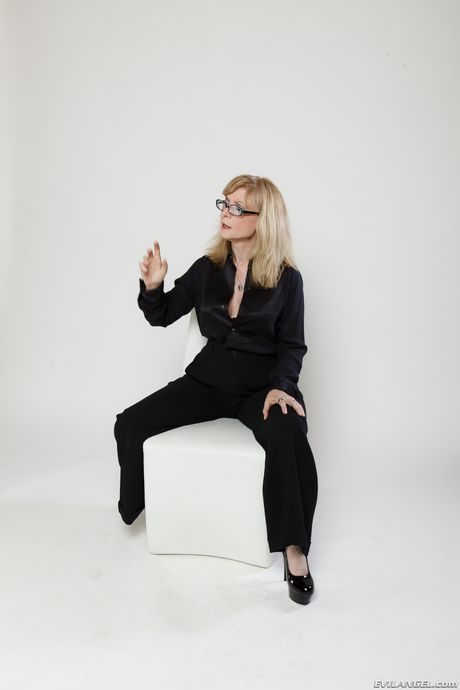 Evil Angel: ] Pornstar madure Nina Hartley exibe seu saque quente e peitos falsos em um solo