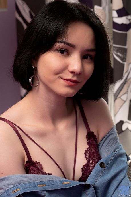 Nubiles: A adolescente atraente naja tira sua lingerie e apresenta sua buceta raspada em uma cama