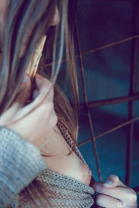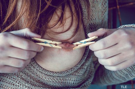 The Life Erotic: Bela adolescente Rebeca Ruby prende seus mamilos e lábios de buceta com prendedores de roupa