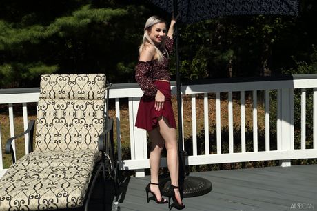 ALS Scan: Loira amadora Aria Amore pistando sua buceta e brincando