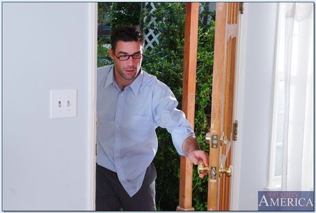 Naughty America: Morena peituda Angelina Valentine tira para meias e saltos