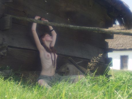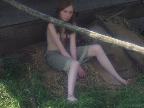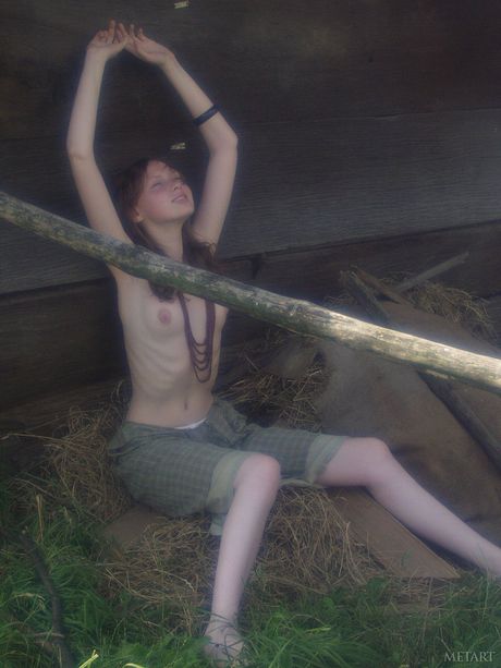 Met Art: A adolescente fofa Katya B mostra seus peitos pequenos e posa nude em um solo