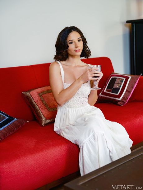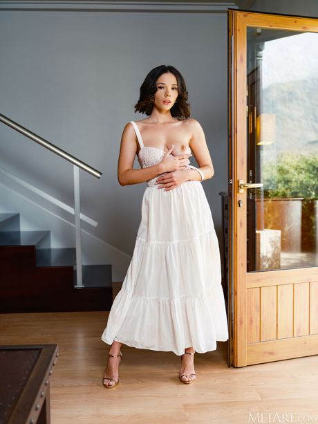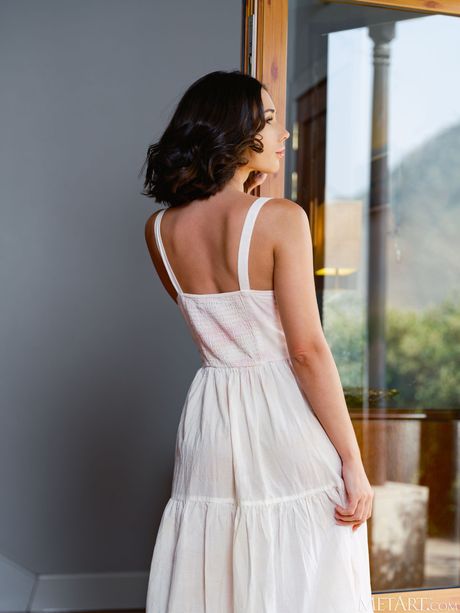 Met Art: A adolescente cativante véspera doce remove o vestido e os calcanhares para ficar totalmente nua