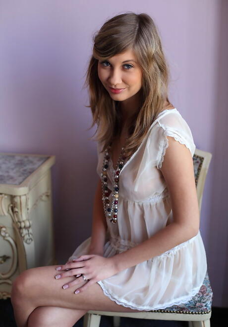 Met Art: Excelente Holly Anderson de cabelos escuros em saia sofisticada em um show de fetiche por pés