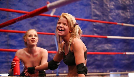 Nude Fight Club: Excelentes mulheres Gitta Blond e Bianka Lovely estão em ação quente de punho