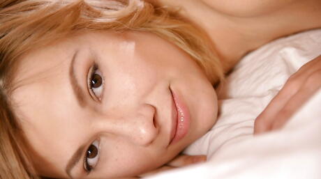 Euro Teen Erotica: Foxy Blond Young Karina D. Baring Big Big Boobies e se masturbando