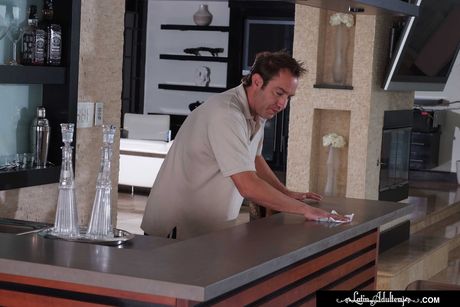 Naughty America: Latina gata uma pedra mostrando seus peitos grandes e bunda sexy