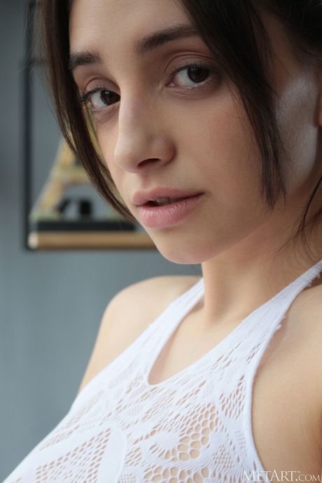 Met Art: Adorável adolescente Olivia Linz remove uma saia e saltos para ficar nu em uma varanda