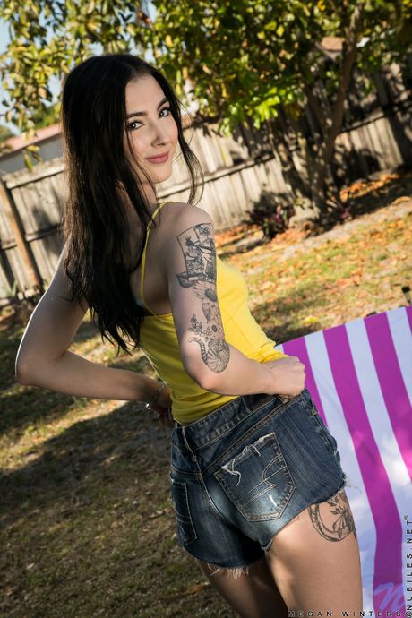 Nubiles: Winters, adolescente megan petite, fica totalmente nu em um cobertor no quintal