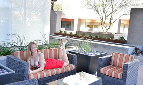 FTV Girls: A loira americana sedutora Kandace Kayne na saia exibe grandes pausas e espalha as pernas ao ar livre
