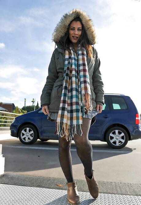 FTV MILFs: Milf britânico sedutor Roxy Mendez em calça sofisticada desnudos grandes mamas e espalha as pernas ao ar livre
