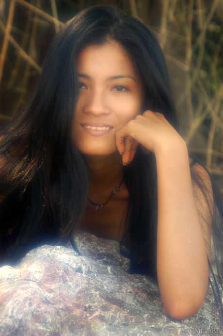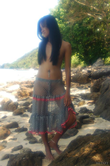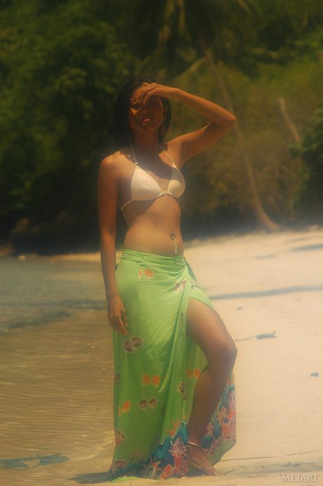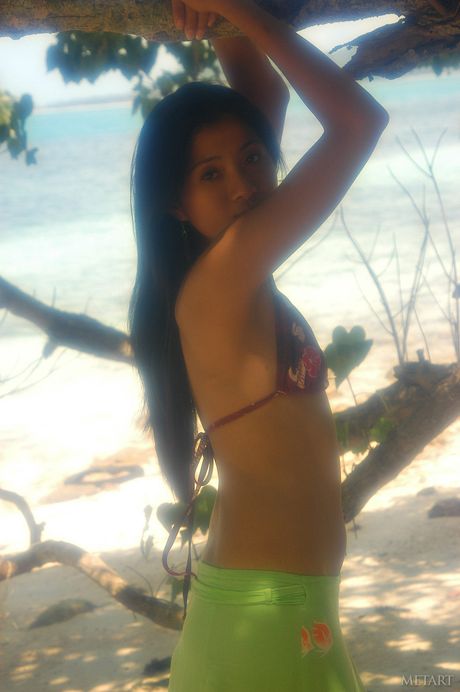 Met Art: A adolescente asiática sexy Mey remove sua lingerie para posar nua na praia