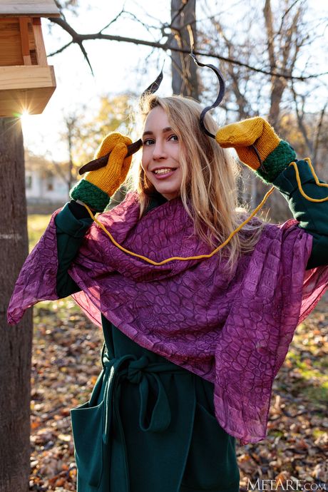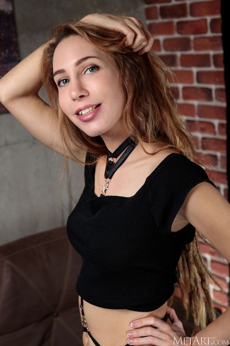 Met Art: A ruiva sexy Madelina remove seu vestido preto e meias para posar nua