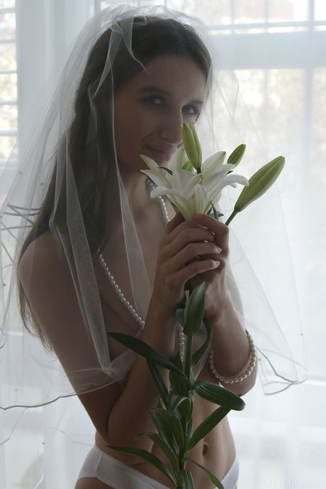 Met Art: Gata ucraniana sexy zavya tira e posa nua em seu vestido de noiva