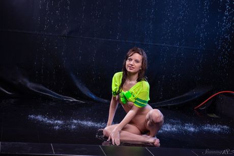 Stunning 18: Belle Solana, russa magra, uma tira e posa nua em uma sessão solo