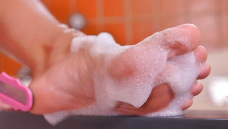 Hot Legs and Feet: O esbelto British British Hottie Cherry Kiss adora fetiche por pés no banheiro