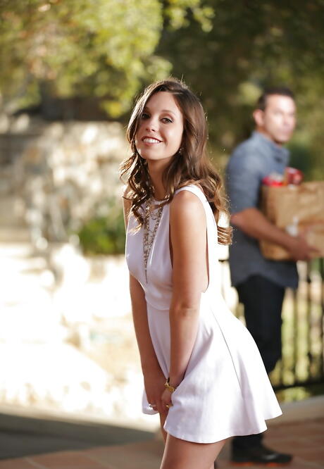 Sweet Sinner: Bomba de cabelos escuros impressionante Jade Nile em saia sexy, descobrindo peitos pequenos e castor peludo ao ar livre