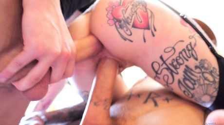 Evil Angel: Pornstar tatuado megan inky é fodido duplo por homens negros em meias