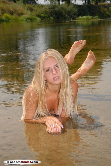Goddess Nudes: Feja adolescente fino posa totalmente nu em uma praia de areia na água