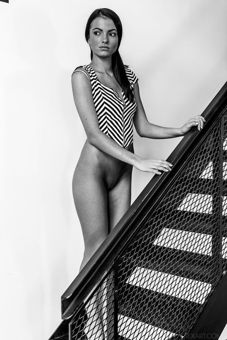 Sex Art: Sapphira adolescente fina A Dedos sua buceta depois de ficar nua na escada