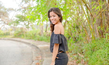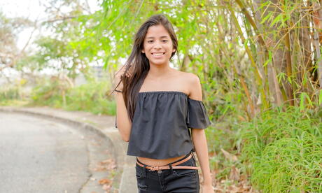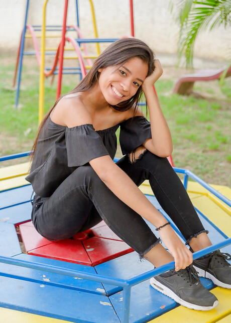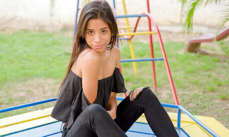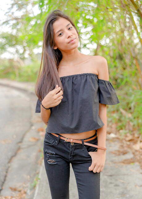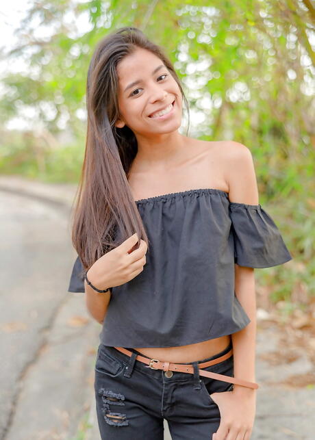 Watch 4 Beauty: Muito atraente morena latina jovem karin torres em posando sexy na câmera ao ar livre