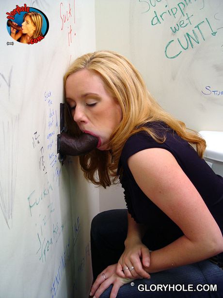 Dogfart Network: Blond skönhet Britney Alexander suger av en BBC genom ett glanshål i en toalett