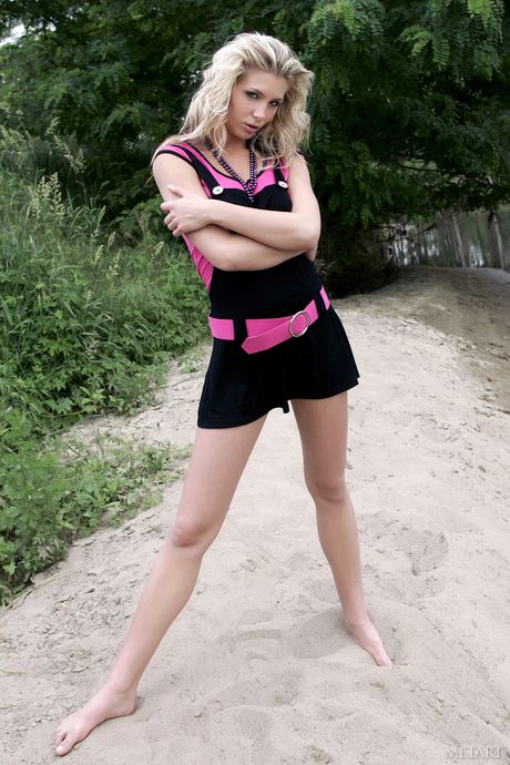 Met Art: Blond tonåring Danae A blir naken på en strand före en creampie