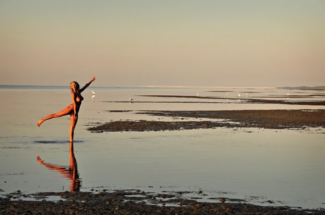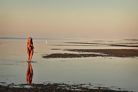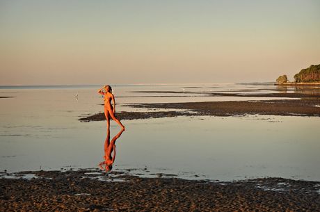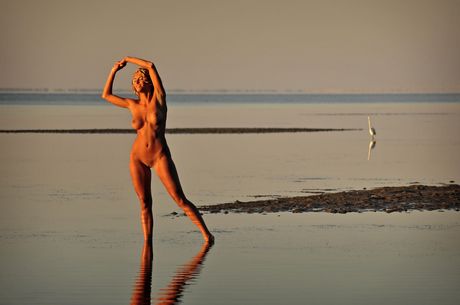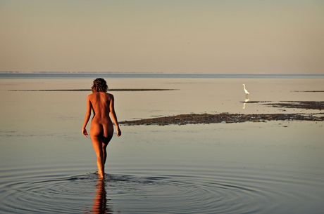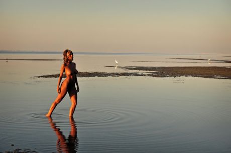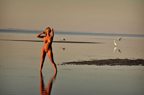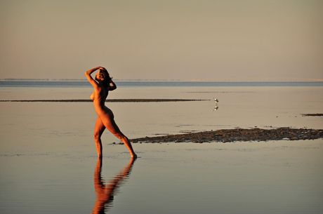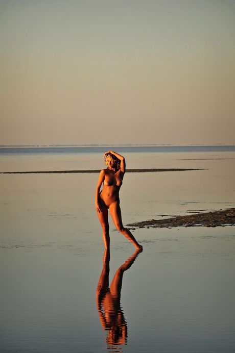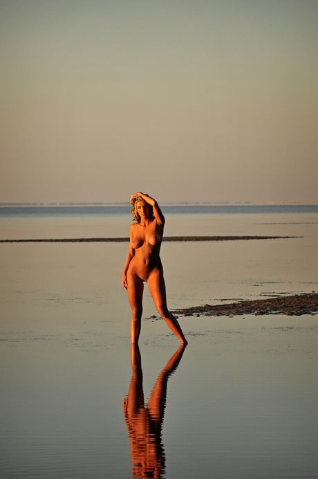 The Life Erotic: Blond Teen Marilyn Winters modeller helt nakna på en stenig strand