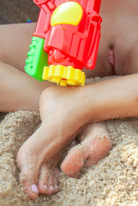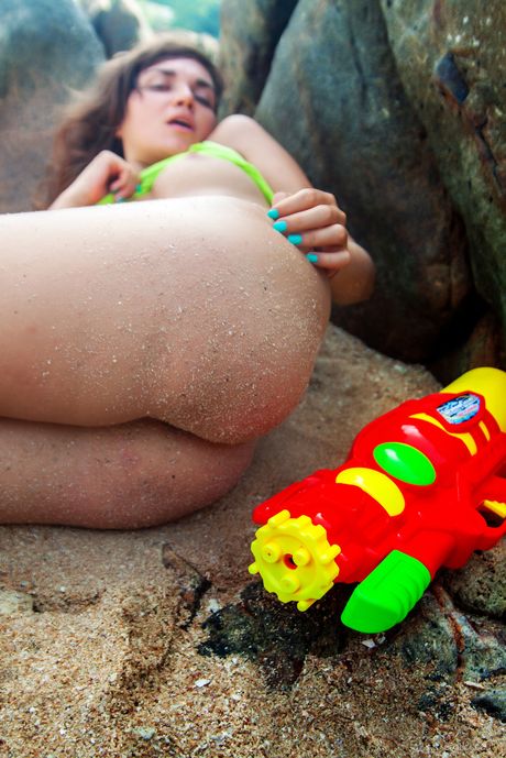 Erotic Beauty: Brunett Teen Bori Keis tar bort sina solglasögon medan hon blir naken på en strand
