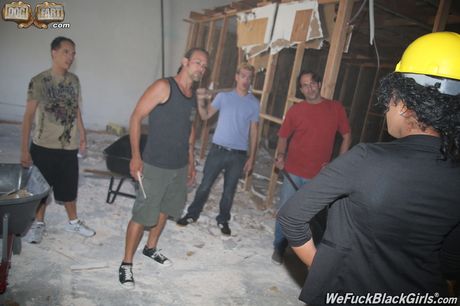Dogfart Network: Busty Ebony Layton Benton blir gangbanged av vita byggnadsarbetare