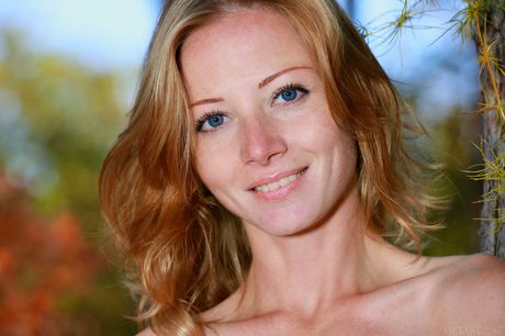 Met Art: Söt tonåring Diana Bronce remsor naken och visar sin söta fitta i skogen