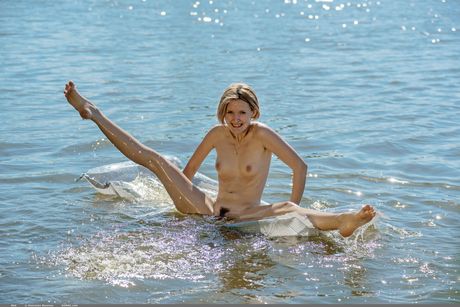 Domai: Delikat Teen Mak blir naken i vattnet och på sandstranden