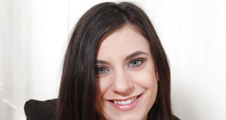 Wet And Puffy: Härlig brunettkutie Gabi de Castello avslöjar stora hooters och onanerar