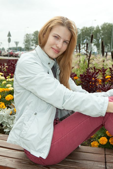 Met Art: Engagerande Teen Monika F -remsor och poserar naken på landsbygden