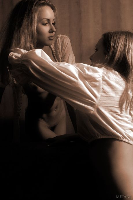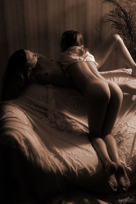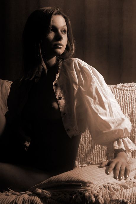 Met Art: Het tonårsbrud med små bröst och rakad fitta poserar nakna i studion