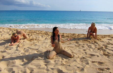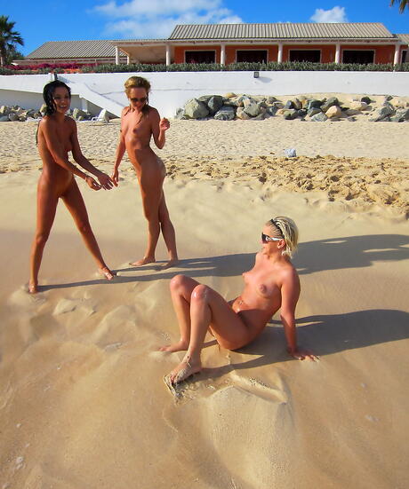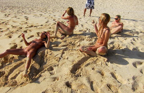 ALS Scan: Luscious Babes Franziska, Kacey Jordan, Sara Jaymes och Bibi Noel njuter av Crazy Lesbian Groupsex på stranden