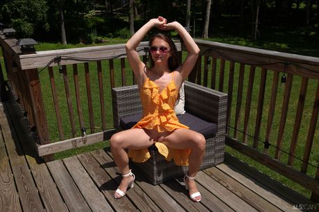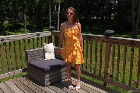 ALS Scan: Petite Teen Mira Monroe pissar och onanerar hennes rakade fitta