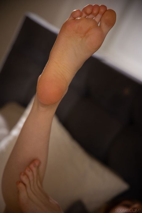 Sex Art: Pretty Teen Alecia Fox fingrar hennes fitta efter att ha blivit naken på sin säng