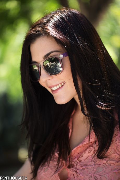 Penthouse Gold: Pretty Teen Jenna Reid remsor nakna och poserar i naturen medan du cyklar