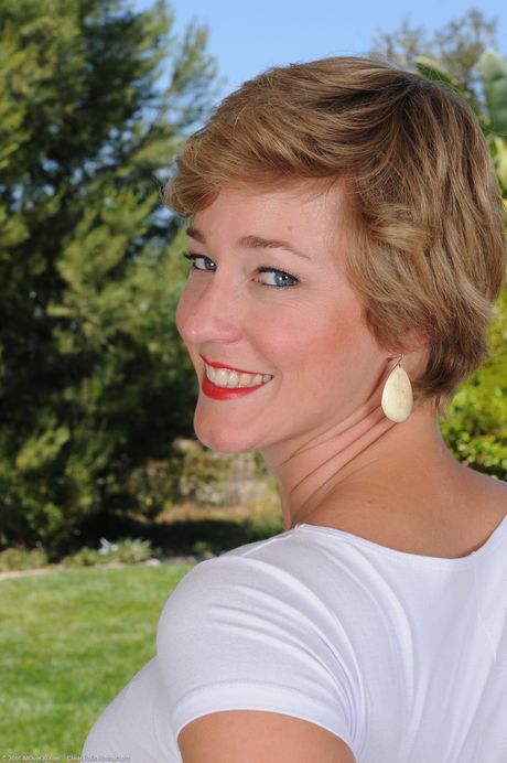 All Over 30: Rödhårig Milf Liz Sophia remsor naken i solskenet