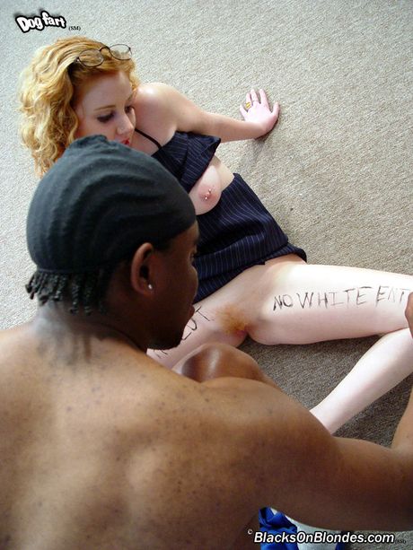 Dogfart Network: Rödhårig sekreterare Cherry Poppens får sin håriga fitta knullad av två svarta kukar