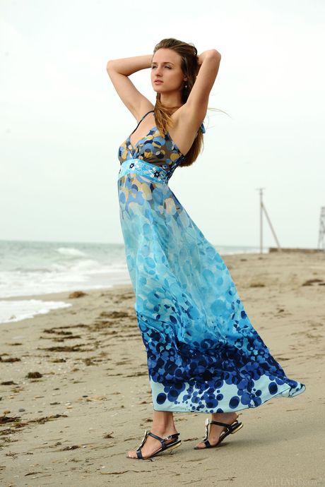 Met Art: Ryska mässan Vittoria A blir naken på en strand och visar sin våta fitta
